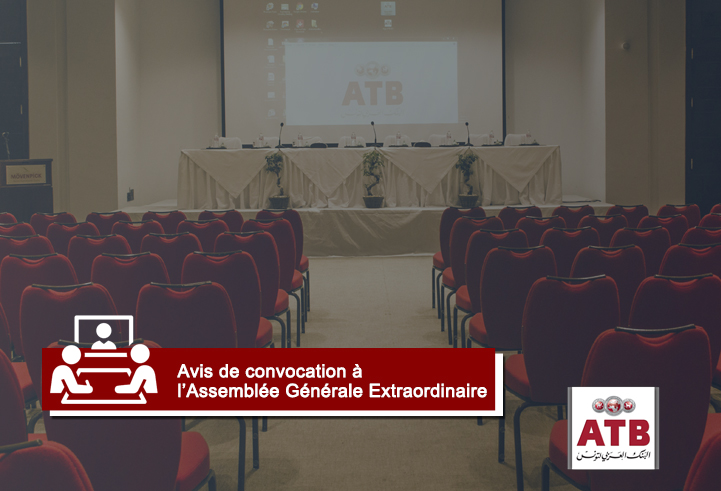 Mesdames et Messieurs les actionnaires de l’ARAB TUNISIAN BANK sont invités à participer à l’Assemblée Générale Extraordinaire qui se tiendra le 26 Novembre 2021 à 10 :00 heures du matin à l’hôtel « Novotel Tunis Lac- Les Berges Du Lac 2 » et ce à l’effet de délibérer sur l’ordre du jour suivant :